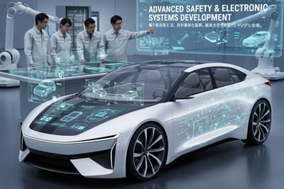 自動車の電子装備や先進安全技術の企画開発で、プロジェクトマネジメントを含めた包括的なエンジニアリングを提供しています。特にAIを活用した最新技術の導入に積極的であり、少数精鋭の組織で柔軟性を持った開発体制を強みとしています。